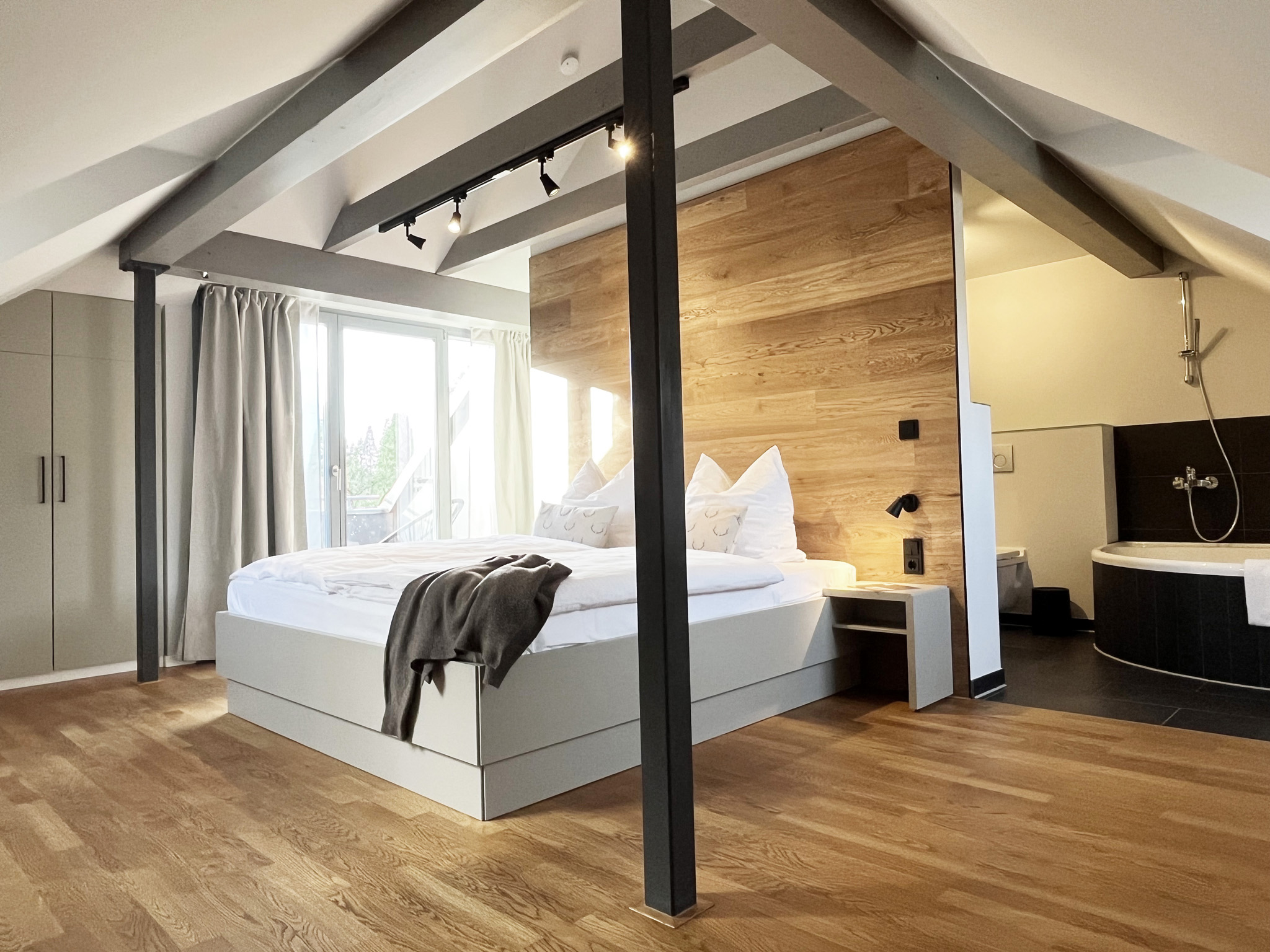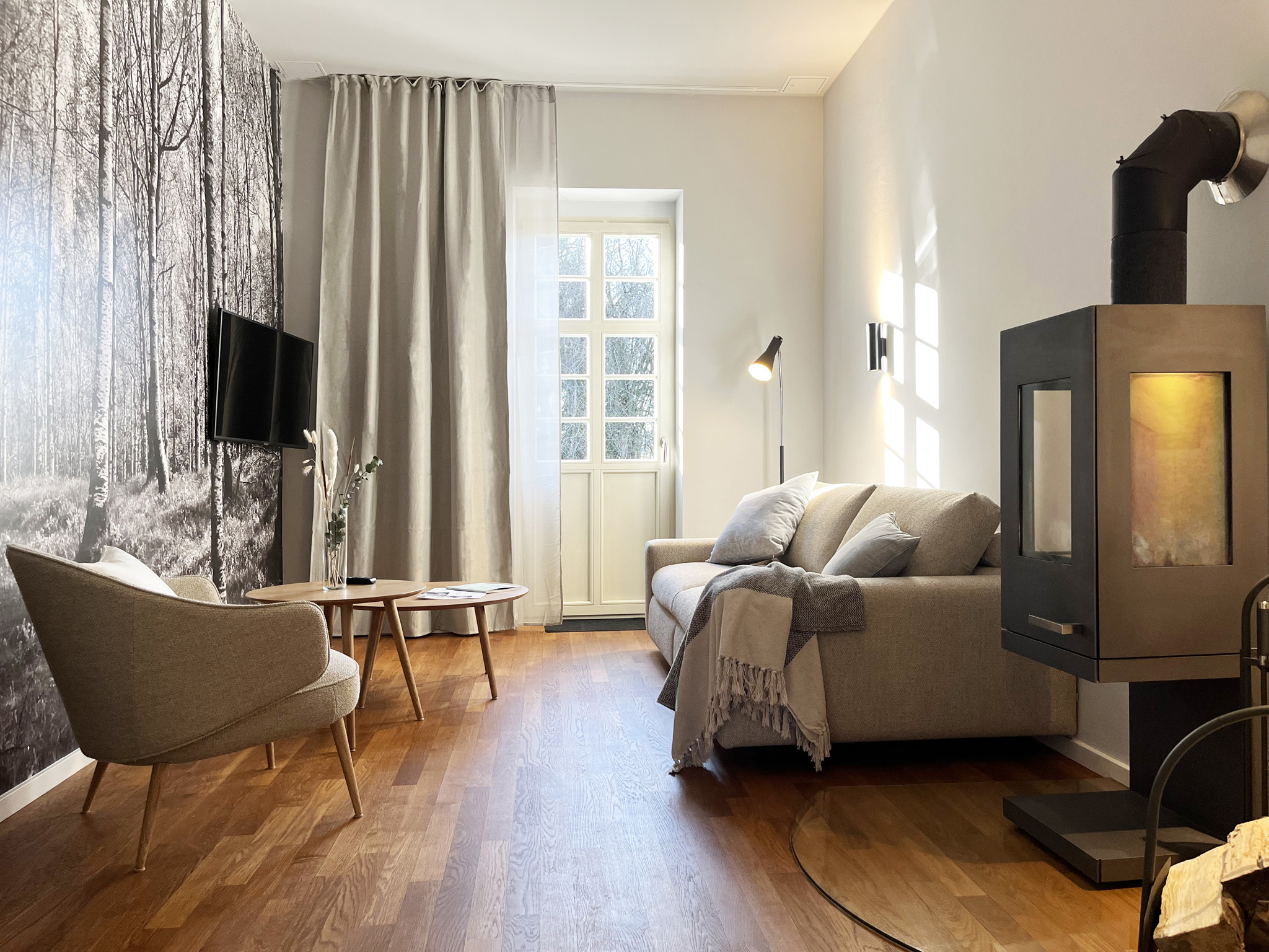 Die Apartments sind geschmackvoll und hochwertig eingerichtet und verfügen über mehrere Bäder und Saunen sowie eigene Kaminöfen.